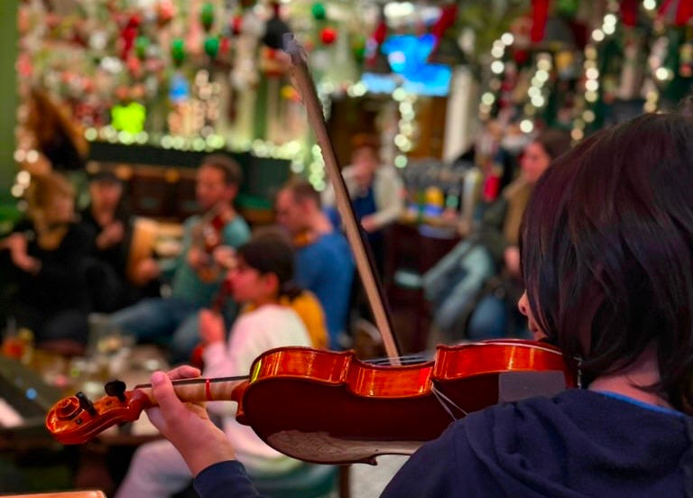 My son’s teacher talks frequently about his own teacher, the head of a prominent New York Irish fiddling family, and he invites the kids out to play in Irish music sessions in bars around the city. At the last class, one of the kids asked him if he himself was Irish. “I’m a Jew from New Jersey!” he replied, grinning. In his hands, in his world, Irish music is both a heritage and entirely inheritable by whoever is interested in it; the threshold is the floor.